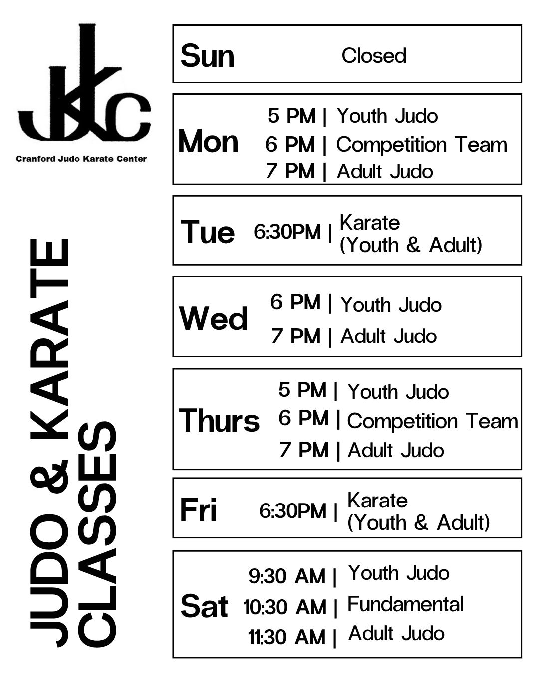 Please arrive 15 minutes early to meet the Sensei